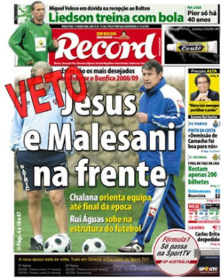 Existe por aí, em certa imprensa, talvez eufórica pela exuberante diferença de pontos que separa o campeão anunciado do Benfica, desejosa de reescrever a história. São, nesta altura, bem contados, dezasseis pontos que marcam a diferença entre a melhor e mais consistente equipa do campeonato e a anémica e desorganizada junção de jogadores que semanalmente o Benfica deita para o campo na ilegítima esperança de ganhar qualquer coisa mais que não seja experiência para o futuro. Porém, quando passo a vista no jornal o “Público” e deparo com o foguetório jornalístico a pretexto da iminente queda do recorde de pontos de vantagem sobre o segundo classificado, que o Benfica ainda detêm, verifico essa tentativa desesperada de passar uma esponja sobre a história, de forma a que todos acreditem que o hiper-poderoso FC Porto está prestes ao Benfica mais uma das suas marcas da supremacia histórica no futebol português.Para isso é que servem os adeptos. Para que estas tentativas não consigam fazer o seu caminho, é necessária uma sentinela permanente sobre estes atentados à grandeza do Benfica. Vejamos, uma coisa é a actual equipa de futebol e outra é a grandeza adquirida pelos clubes. Nesse aspecto, o Benfica é o maior e assim continuará. São trinta e um títulos, vinte e duas taças de Portugal. E mais uma série de recordes que o vitorioso FC Porto de Pinto da Costa nunca conseguiu ultrapassar e tão pouco igualar.