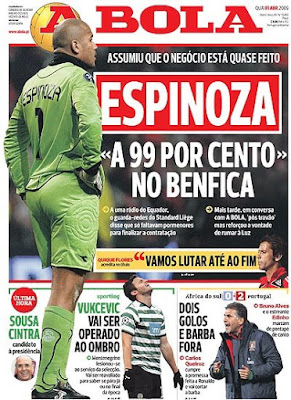 Mais uma sondagem realizada, e eis a análise aos resultados: em primeiro lugar, nestas duas semanas, 251 votos recebidos. Mais um record. Muito obrigado aos que votaram. E desses 251 que votaram,78% acha que Fábio Coentrão é o jogador que mais condições reúne para representar o Benfica na próxima época, sinal de confiança no jovem vila-condense. Por mim, era pô-lo a jogar contra o FCP que ele marcava de certeza. Seguiu-se o norte-americano Freddy Adu, com 62% dos votos, que esta época tem jogado muito poucos minutos pelo AS Monaco. Com quase metade dos votos (47%) ficou o jovem lateral esquerdo internacional sub-21 e cedido esta época ao Desportivo das Aves, Ruben Lima, seguido do também "avense" Romeu Ribeiro, que apenas tem a confiança de 30% dos benfiquistas, aproximadamente o mesmo valor do médio ofensivo André Carvalhas (29%), que se encontra cedido à Olhanense. Em último lugar surge Miguel Rosa, desconhecido para muitos, mas que, dizem as crónicas, tem feito um óptimo trabalho no Estoril, onde realizou, para a Liga, 13 dos últimos 14 jogos da sua equipa, tendo sido titular por 9 vezes nesse período.